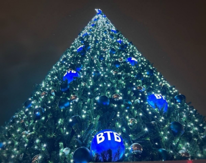В таком же стиле банк декорирует больше 30 елей в 27 городах России — от Камчатки до Новороссии. Новогодняя кампания ВТБ создаёт праздничное настроение, приглашая провести эти дни в кругу близких и друзей. Основным решением кампании выбраны вязаные элементы: тёплый синий шарф, еловые ветки, вязаные персонажи, а также слоган, который максимально точно отражает то, что хочется делать во время каникул: "новогодничать