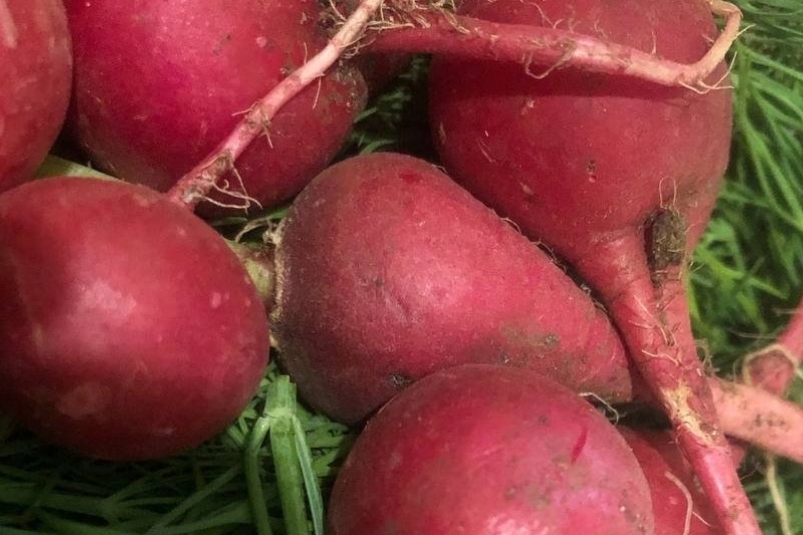 Это раннеспелый сорт, который хорошо растет в открытом грунте и теплицах. Корнеплоды округлой формы, имеют яркий розово-алый цвет. Их диаметр до 5 см, а масса до 35 г. Мякоть белого цвета, она плотная и нежная, имеет приятный, слегка острый вкус.