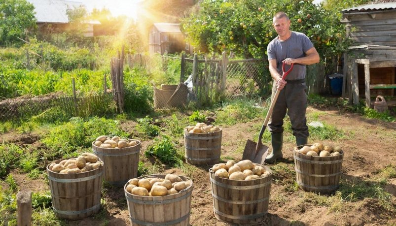 "Я выбрал схему 100 на 100 сантиметров. На 4 сотки размещается 400 кустов, уходит 40 килограммов семян весом по 100 граммов каждый клубень. С куста собираю по 3,2 килограмма при благоприятных условиях — это 1280 килограммов общего урожая картофеля. Переводим в ведра — ровно 160 штук", — делится дачник.