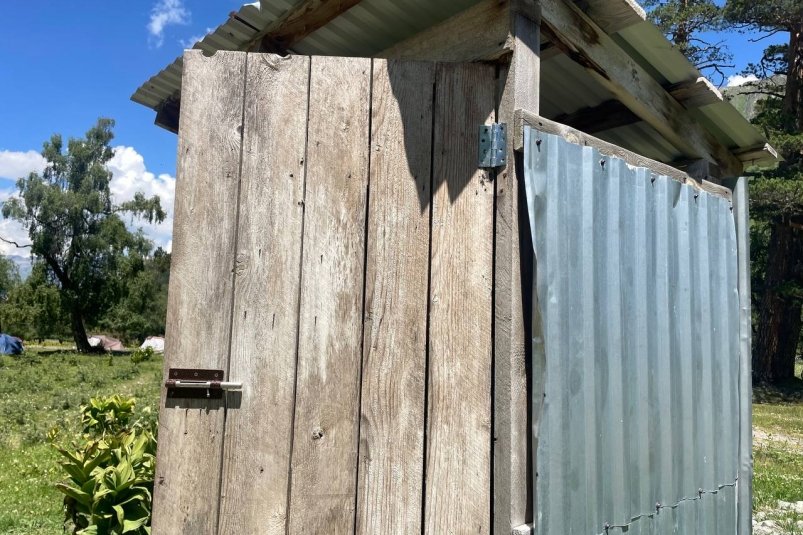 Если изначально вытяжка в уличном туалете не была предусмотрена, есть проверенный способ все исправить без масштабной перестройки. Понадобится обычная труба — пластиковая или металлическая. Ее заводят внутрь короба выгребной ямы, а второй конец выводят на крышу кабинки.