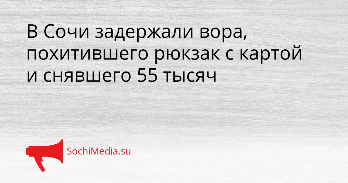 В Сочи задержали вора, похитившего рюкзак с картой и снявшего 55 тысяч