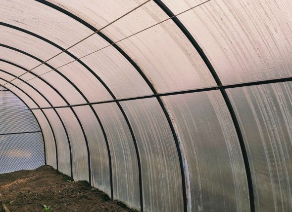Когда теплица сделана из прочного двойного поликарбоната, а зима в вашем регионе не слишком снежная, можно оставить двери распахнутыми. Это поможет "выморозить" грибок и вредителей, которые не переживут мороз. Также открытые двери предотвращают порчу самой теплицы, так как перепады температуры могут негативно сказываться на поликарбонате.