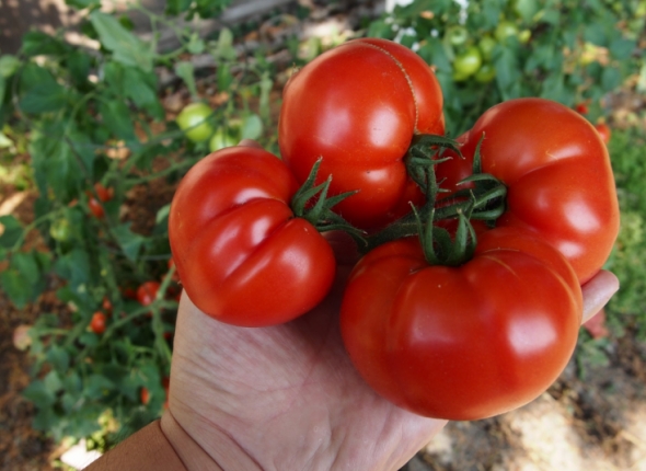 Игорь К., город Нижний Новгород: "Доволен гибридом. Кусты не загромождают участок. Помидоры крупные, красивые и с необычным сладким, фруктовым вкусом. Важно вовремя собирать урожай, они не любят перезревать."